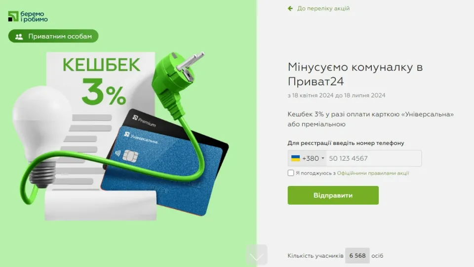 Щоб отримати вигоду, клієнти ПриватБанку віком від 18 років мають зареєструватися в акції. Брати участь можуть власники гривневих карток "Універсальна", "Універсальна Gold" і преміальних карток.