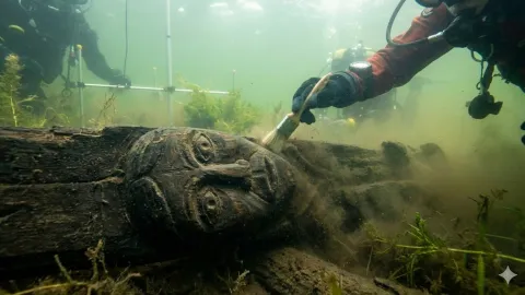 У польському озері Ледниця підводні археологи виявили рідкісну дерев’яну голову, яку датують X століттям. Знахідка, що збереглася завдяки унікальним умовам водойми, відкриває нові деталі про духовний світ слов’ян у період християнізації Польщі.